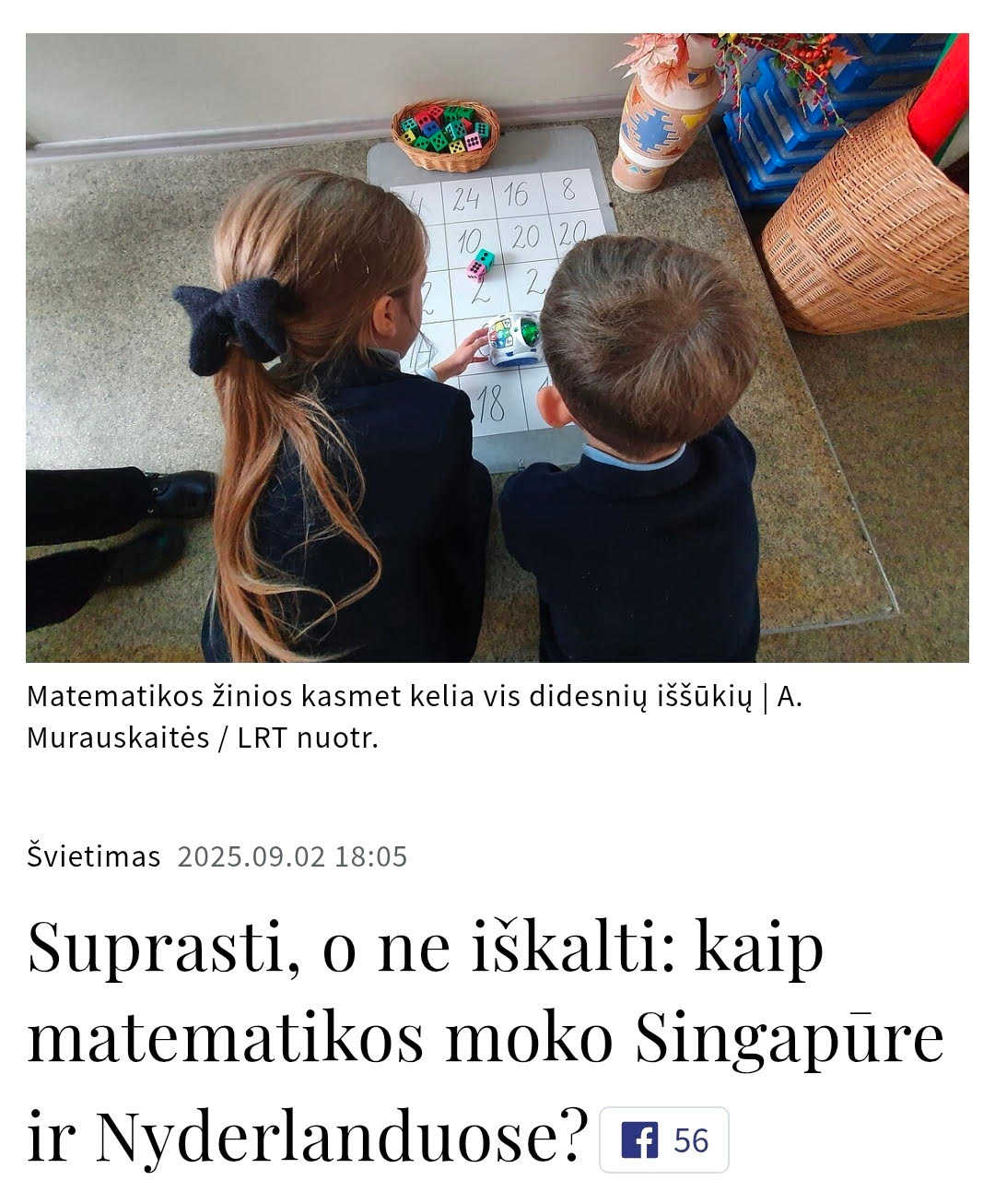 Mokosi.lt pozicija aiški - matematika turi ugdyti mąstymą, o ne baimę suklysti. Tam reikia laiko, aiškaus paaiškinimo ir vaikui tinkamo tempo. Tarptautiniai pavyzdžiai rodo, kad tai veikia. Klausimas tik, ar esame pasiruošę nuo „iškalimo“ pereiti prie tikro supratimo.
